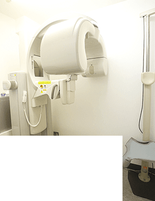 骨の形や密度、歯の中までわかる歯科用CT。目では確認できない部分まで、しっかりと診断します。従来のレントゲン装置は、骨の内部を調べるために多くの放射線が必要でしたが、新しいデジタル技術を搭載した当院のCTは、被爆量を最小限に抑えつつ、骨密度まで分かる仕様になっています。