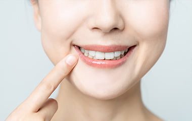インプラント体は歯茎の中に埋め込まれるため、外から見えるのは上部構造(人工歯)のみ。天然歯に近い色や形の被せ物を選べるため、笑った時も自然で美しい仕上がりになります。