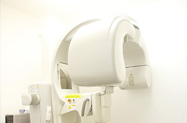 歯科用CTは、医科で使われるCT(コンピューター断層撮影)の技術を応用し、顎や歯の撮影に特化した最新の装置です。通常のレントゲンは平面での情報しか得られませんが、歯科用CTは三次元(立体)で撮影できるため、 歯や神経、顎の骨の位置や形、骨密度まで正確に把握することが可能です。