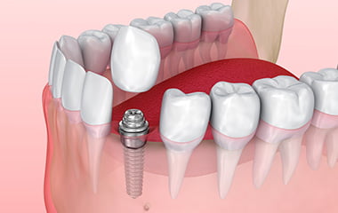 インプラント治療は、顎の骨に人工歯根(インプラント体)を埋め込み、その上に人工の歯を装着する治療法です。